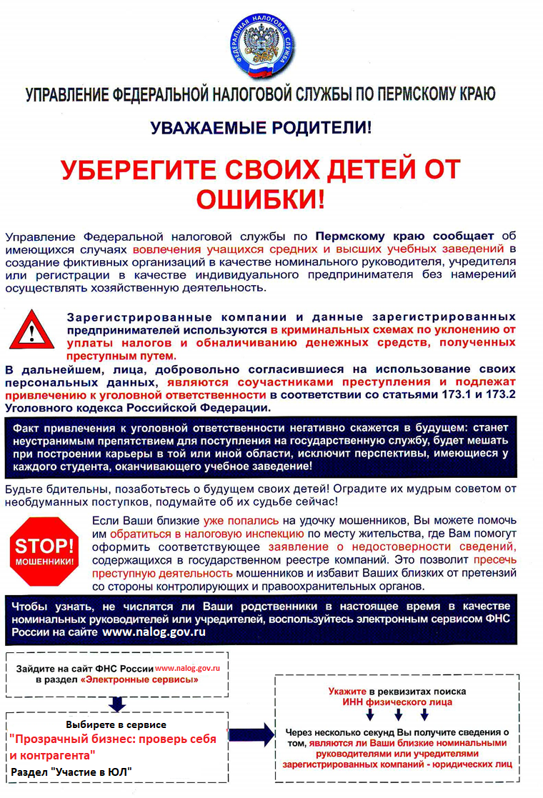 Межрайонная ИФНС России № 1 по Пермскому краю информирует