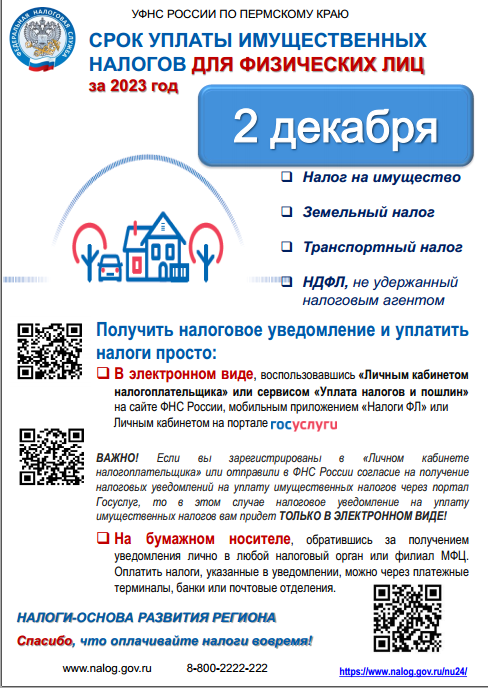 Налогоплательщики Пермского края начали получать налоговые уведомления на уплату имущественных налогов за 2023 год.