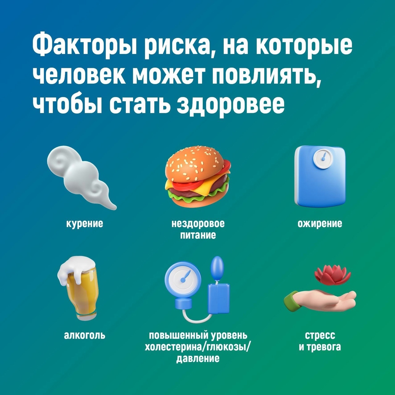 50% вклада в развитие ХНИЗ вносят курение, нерациональное питание, низкая физическая активность, избыточное потребление алкоголя, повышенный...