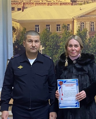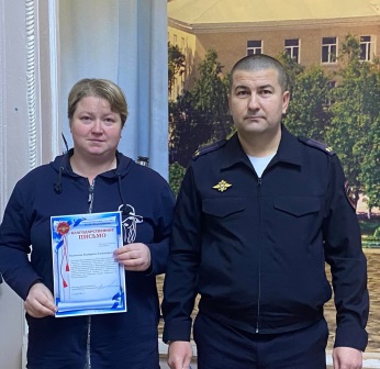 Представитель территориального отдела полиции вручил дружинникам благодарственные письма за плодотворное сотрудничество и общественную поддержку деятельности полиции.