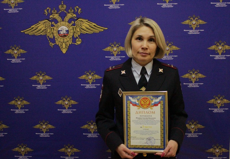Третье место заняла Светлана Шадрина старший лейтенант полиции инспектор по делам несовершеннолетних отдела участковых уполномоченных полиции и по делам несовершеннолетних межмуниципального отдела МВД России «Кудымкарский».