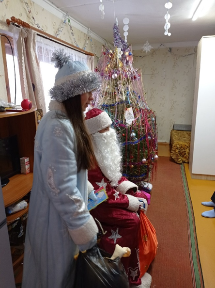 Поздравление для детей, состоящих на учете в КДН и ЗП продолжилось 28,29 декабря 2021 г. С хорошим настроением встретили Новый год несовершеннолетние подростки, состоящие на учете, которые примеряли на себя роль Деда Мороза и Снегурочки, поздравляя своих младших сестер и детей младшего возраста, которые не смогли посетить новогоднюю елку, им также вручены новогодние подарки, сертификаты с игровой комнаты «Happy Hippo».