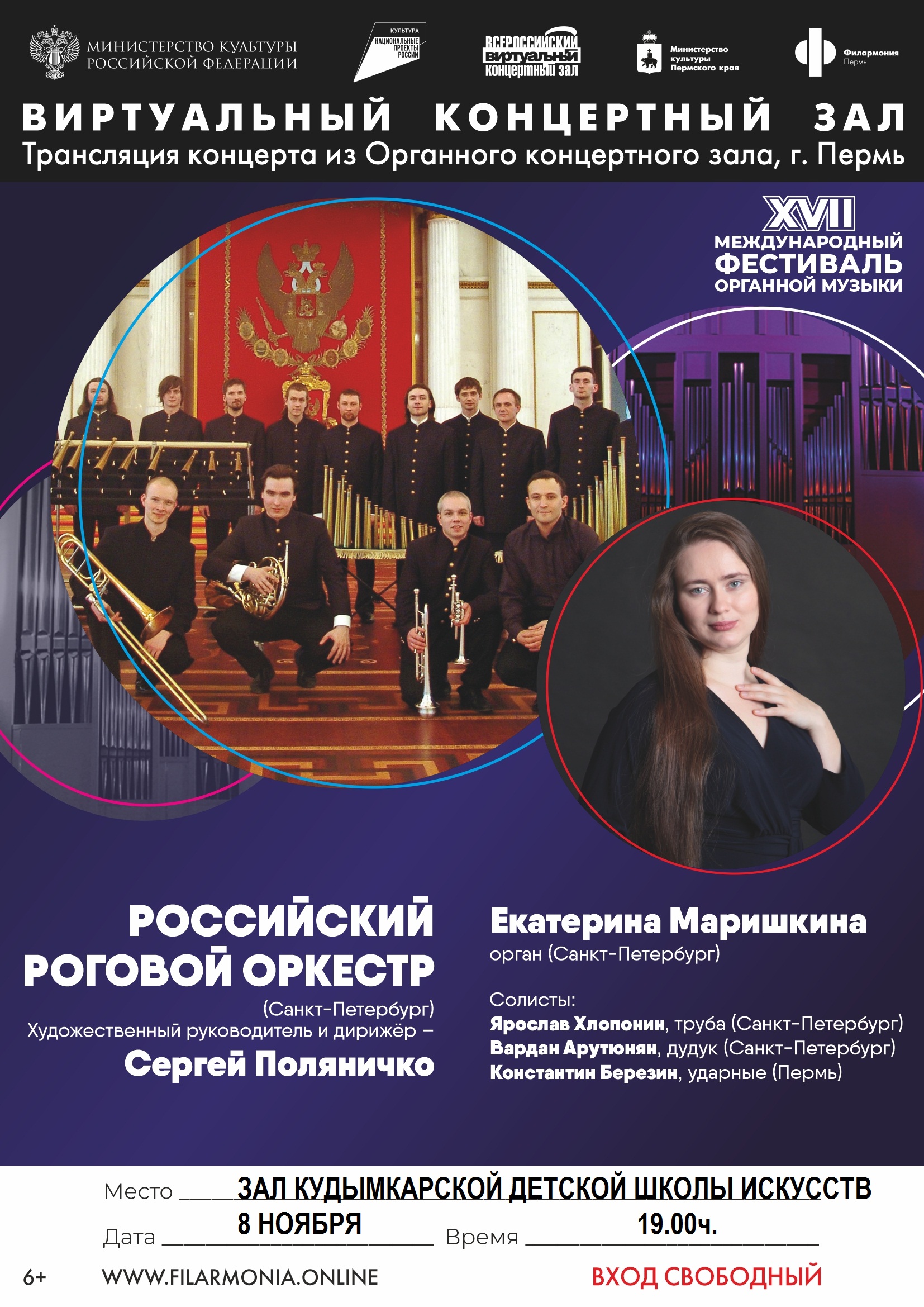8 ноября в рамках Органного фестиваля состоится уникальный концерт с участием Российского рогового оркестра под управлением Сергея Поляничко. С известным коллективом из Санкт-Петербурга выступят питерские музыканты — органистка Екатерина Маришкина, дудукист Вардан Арутюнян и трубач Ярослав Хлопонин. В концерте примет участие барабанщик из Перми Константин Березин.