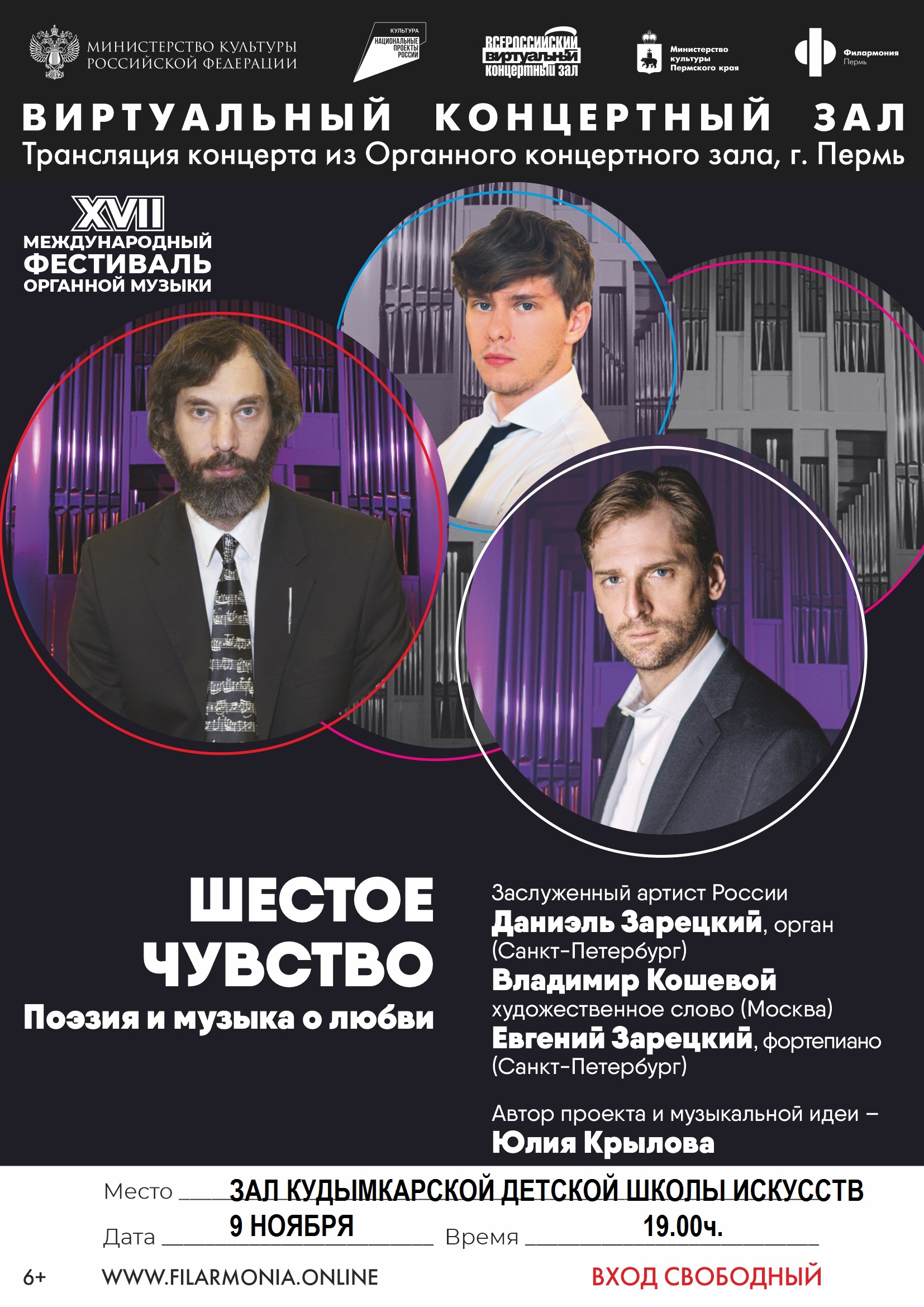 Музыканты – Даниэль и Евгений Зарецкие создадут лирическое настроение, исполнив на органе и на фортепиано сочинения Иоганна Себастьяна Баха, Фридерика Шопена, Леона Боэльмана, Бенедетто Марчелло, Дмитрия Шостаковича, Сергея Рахманинова, Эрика Сати, Александра Грибоедова и Христофора Кушнарёва.