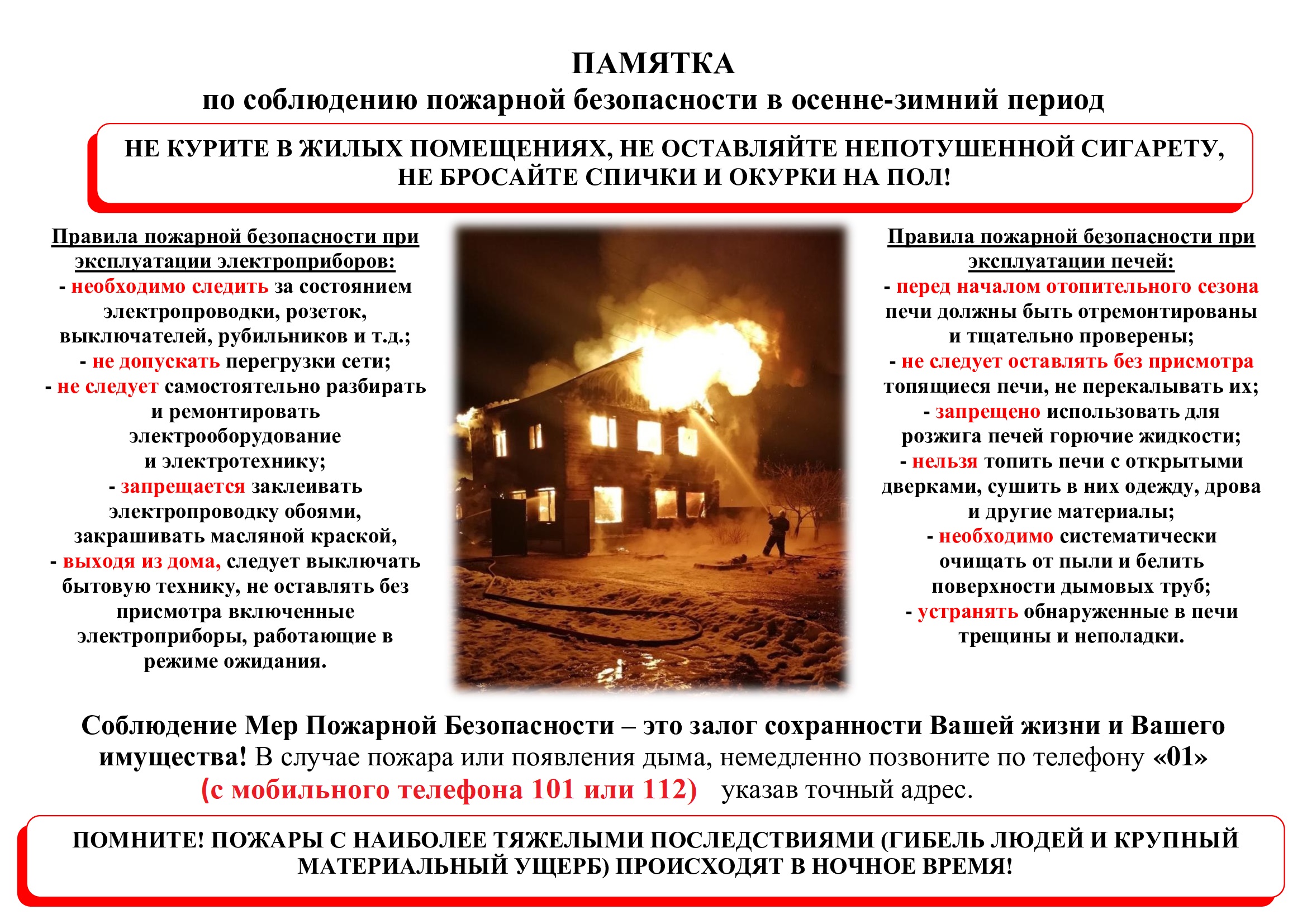 При пожаре звоните 01, с мобильного 101или 112.