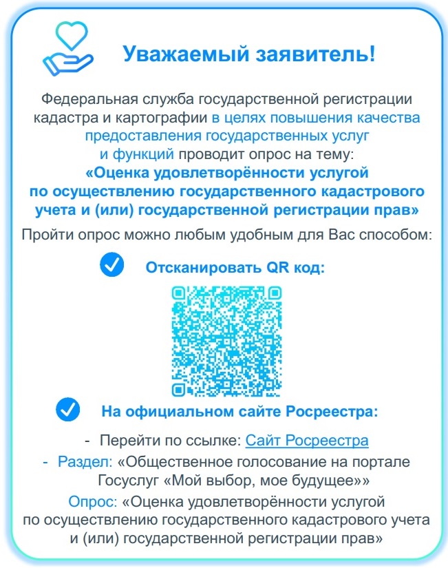 До 08 мая 2024 года можно принять участие в опросе «Оценка удовлетворенности услугой по осуществлению государственного кадастрового учета и (или) государственной регистрации прав».
