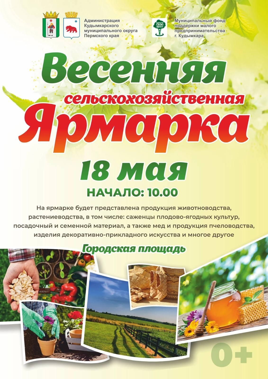 В рамках национального проекта «Малое и среднее предпринимательство и поддержка индивидуальной предпринимательской инициативы» в городе Кудымкаре пройдет весенняя межмуниципальная сельскохозяйственная ярмарка.
