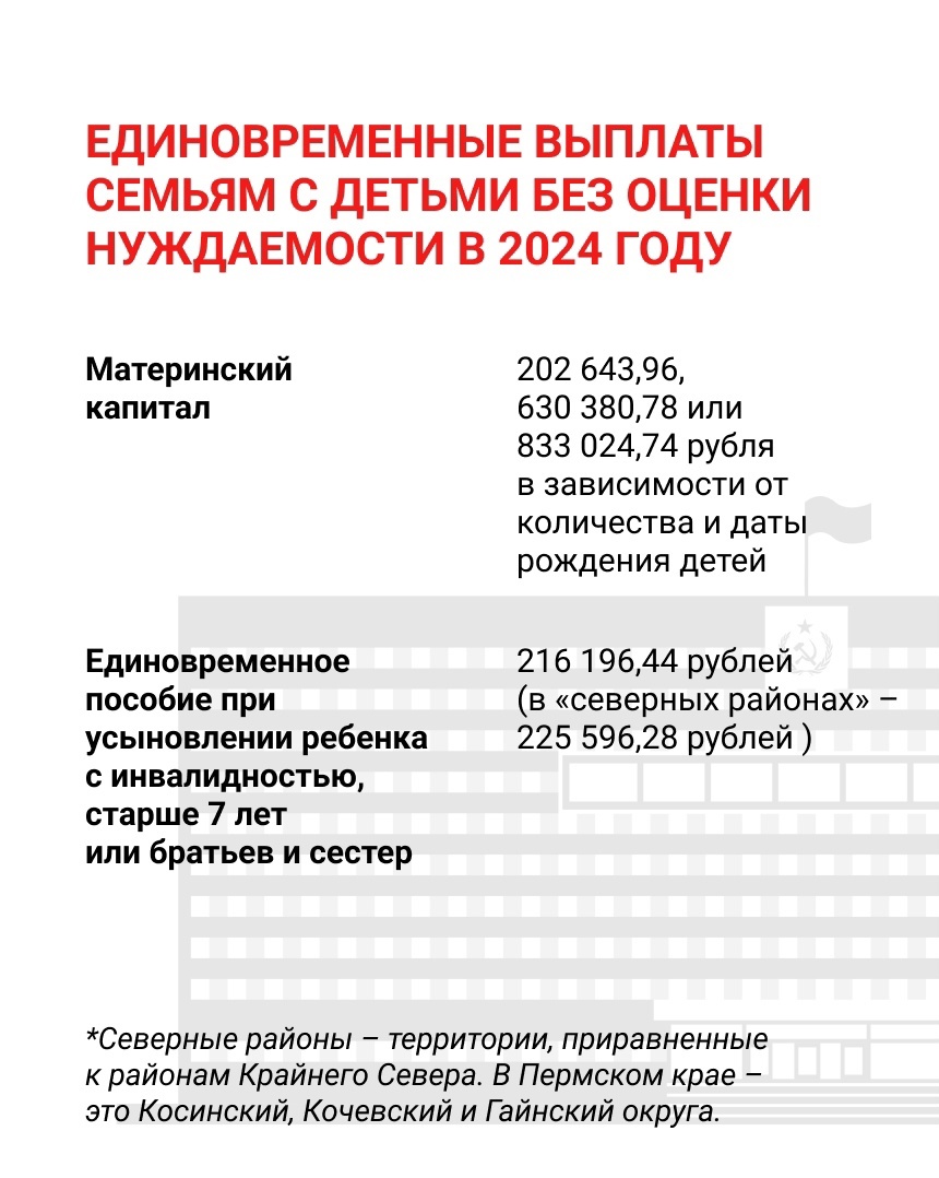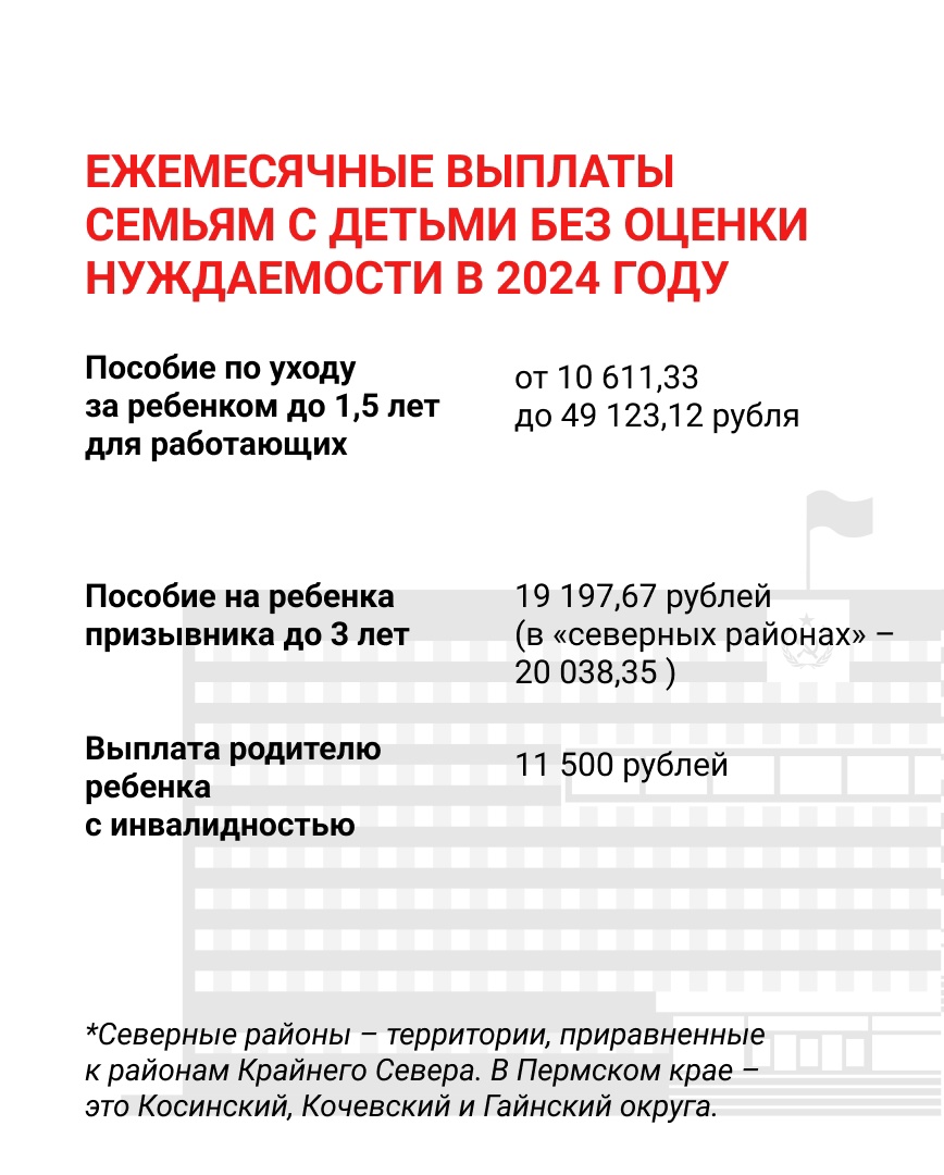 Семьи с детьми могут получать государственную поддержку вне зависимости от дохода. В наших карточках – пособия, которые могут получить родители без оценки нуждаемости, а также их размеры в Пермском крае.
